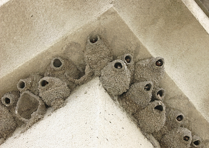 Below: Several of the 40 active Cliff Swallow nests on a Carroll Co. bridge (6/17/2007).