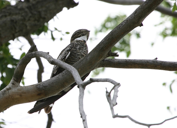Above: A Common Nighthawk in Rockwood Beach, Anne Arundel Co., Maryland (5/26/2008). My friend Tom Feild and I were having a drink in my yard after a great day of kayaking and birding, and we were discussing how strange it is that people almost never report finding roosting nighthawks in Maryland. Literally within minutes, this Common Nighthawk flew across the yard and landed in one of my oak trees. We couldn't believe it. Below: As we watched and I clicked away excitedly, a Common Grackle made it known that the nighthawk wasn't welcome on this particular branch, so the nighthawk flew across the yard and chose another perch.