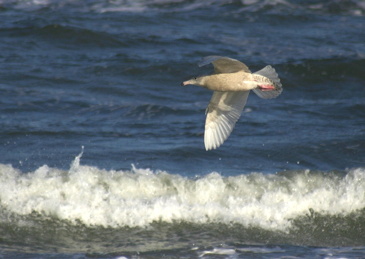 Below: A first-cycle Glaucous Gull shadowed the boat for miles and miles of open ocean in Maryland and Delaware waters (2/5/2011).