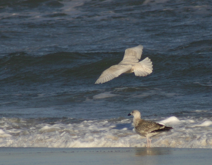 Below four: First-winter Glaucous Gull on the Assateague Island ORV zone, Maryland (11/13/2004)--a very early arrival.