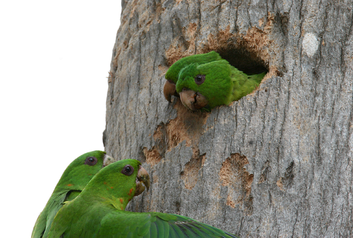 Above and below: A pair of happy homemakers. Green Parakeets nesting near Old Fort Brown in Brownsville (4/23/2006).