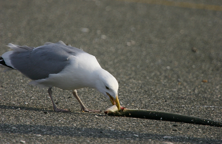 Below: The famous Herring Gull technique of cracking open clams by dropping them on hard surfaces (Assateague Island, Maryland, 8/24/2008).