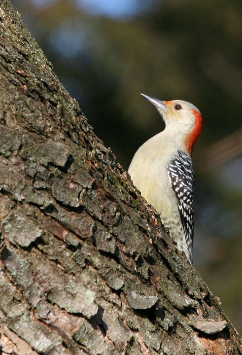 Below: A male Red-bellied Woodpecker allows a look at its namesake red belly, Anne Arundel Co., Maryland (12/21/2007).