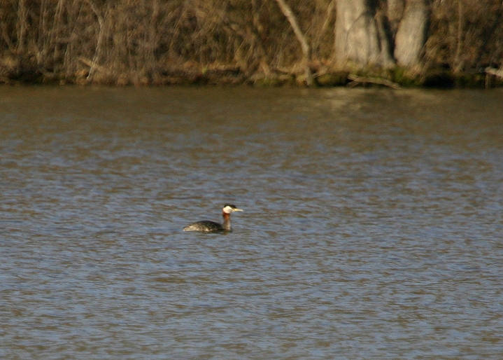 Below: A Red-necked Grebe at Centennial Park in Howard County, Maryland (4/5/2005). Summer (alternate) plumage.