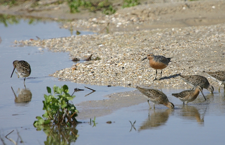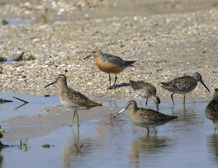 Above and below: In breeding plumage with Short-billed Dowitchers (griseus subspecies) at Flag Pond SP, Maryland (5/21/2005).