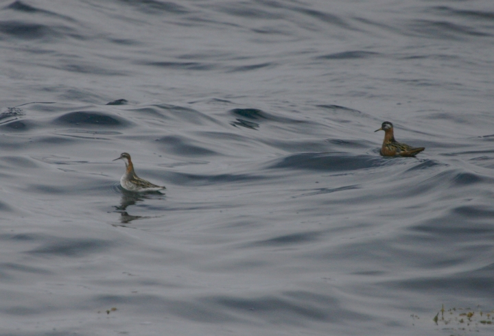 Below: Female Red Phalarope (right) and male Red-necked Phalarope (left).