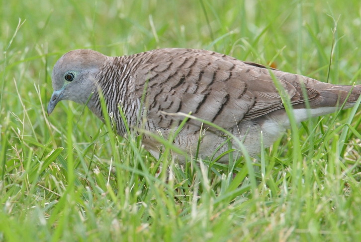 Below: A Common Waxbill feeding on grass seeds (introduced)