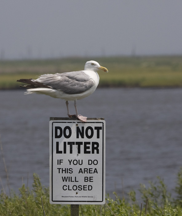 Below: An adult Herring Gull poses for a joke snapshot. He would love to see more littering at the park.