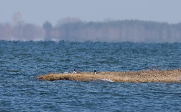 Below: Two American Oystercatchers at the end of Rumbley Road in Somerset Co., Maryland (3/22/2009). Although regular on Smith Island, American Oystercatchers are a rare sighting on mainland Somerset.