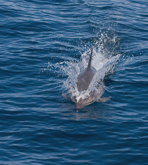 Below: These Common Dolphins escorted their tiny youngsters to inspect our boat and play in the wake (8/16/2009).