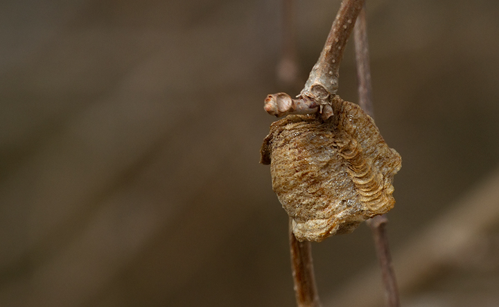 Above: A Chinese Mantis egg case in St. Mary's Co., Maryland (2/24/2013). (View MBP)