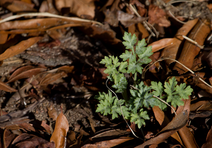 Above: Common Mouse-eared Chickweed emerging in Anne Arundel Co., Maryland (2/14/2013). (View MBP)