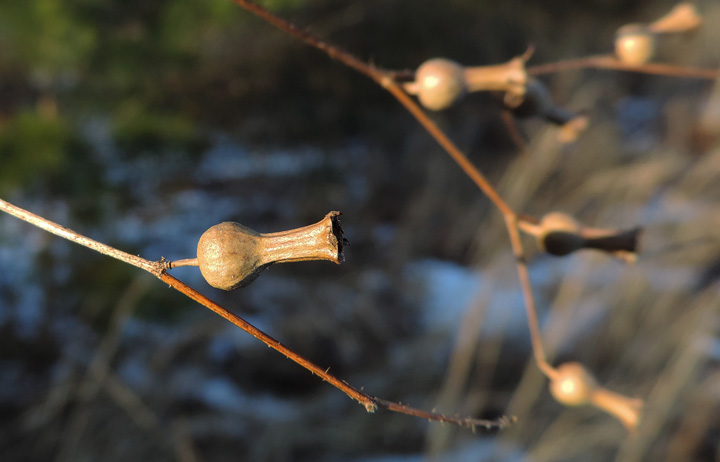 Below: Goldenrod Gall Fly galls (winter) in Anne Arundel Co., Maryland (2/8/2015). (View MBP)